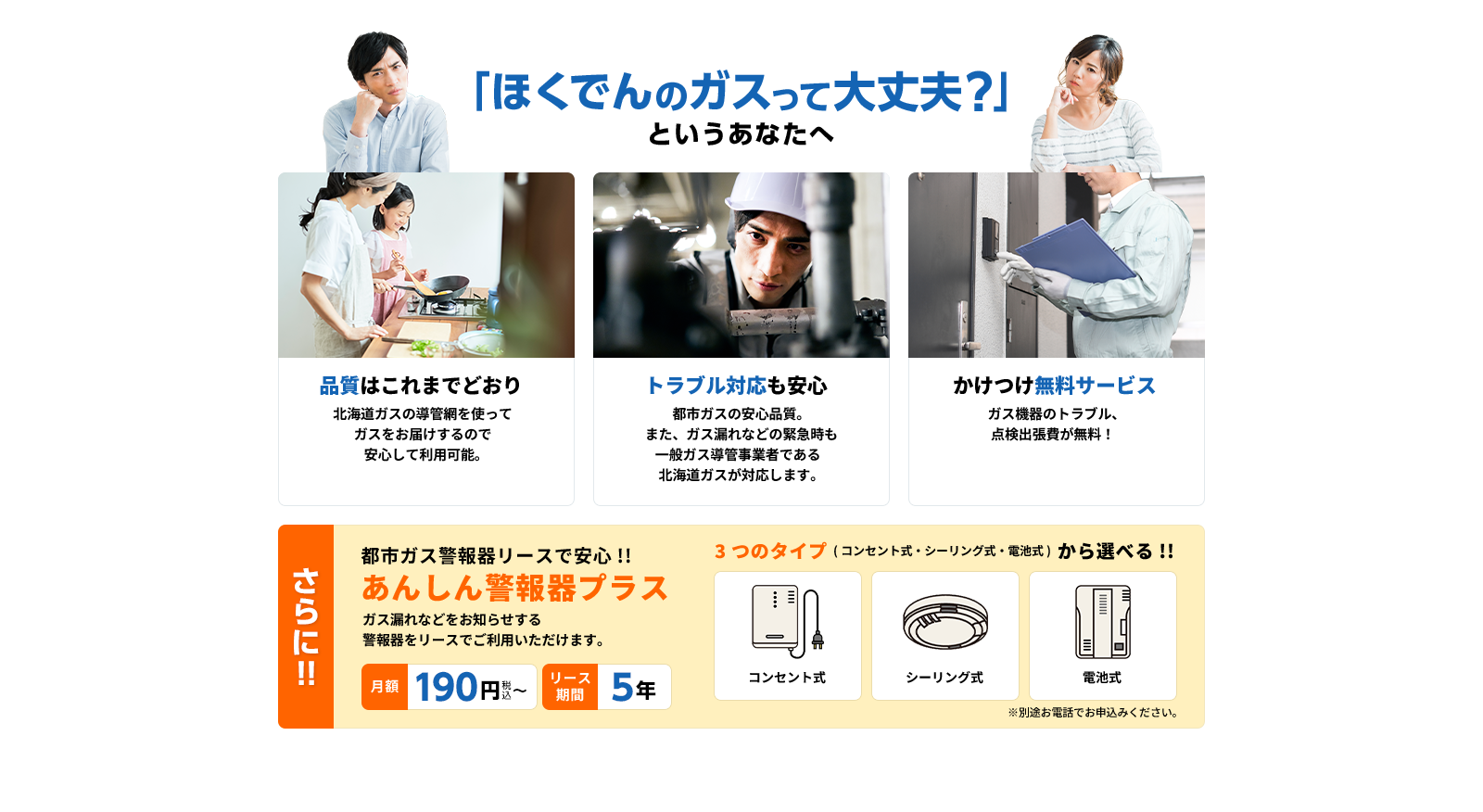 北海道ガスの導管網を使ってガスをお届けしますので、ガスの品質はこれまでと変わりません。また、屋内のガス配管やお使いのガス機器もそのままご利用いただけます。