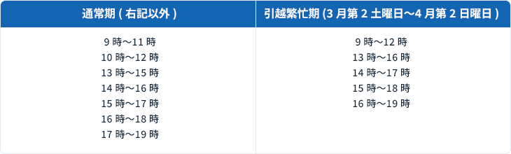 土・日・祝日でも開栓・閉栓作業を実施することは可能ですが、お電話でのお申し込みの受付は平日9時から17時までとなります。混雑状況によってはご希望の日・時間帯にお伺いできない場合がございますので、お引越し日が決まりましたらお早めにWebまたはお電話でお申し込みください